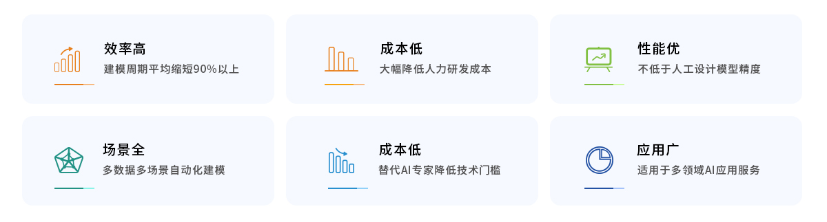 或技术专家实现全流程自动化AI建模,建模周期短、效率高,大幅节省建模时间和人力成本,让更