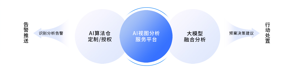 应用服务:AI算法定制 | 实时分析告警 | 多场景AI检测 | 多端告警推送 | AI场景标签 | 视图内容特征 | 多模态检索 | 视频语义问答 | 行业知识库 | 应急辅助决策 | 联动工单处置